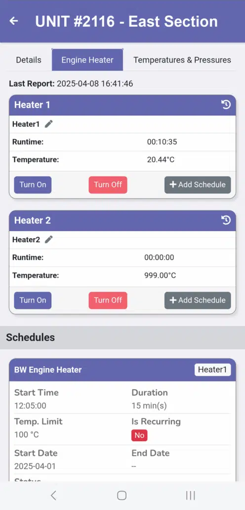 REMOTE ENGINE HEATER CONTROL